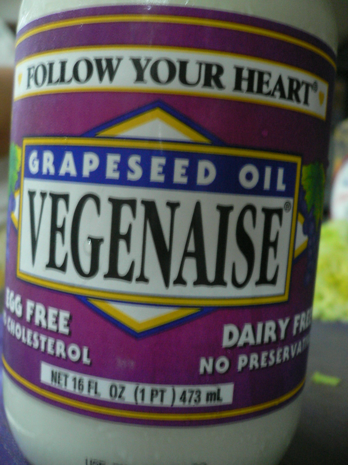 Just wanted to share with you my favorite brand of egg-less mayonaise… Vegenaise. Particularly, the grapeseed oil variety. It’s creamy, thick, rich… the closest thing to Helman’s Mayo. You’ll find it in the refrigerated section of your neighborhood health food store.