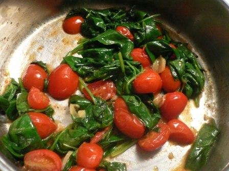 BUCATINI with SPINACH, TOMATOES and GOAT CHEESE