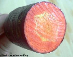 Something curious was that when I peeled the carrots (I did because they were soooooo dirty with mud) I noticed they are orange inside. Not exactly the same as regular carrots, because they have reddish speckles… but orange inside. I thought they would be red, like a beet, inside.