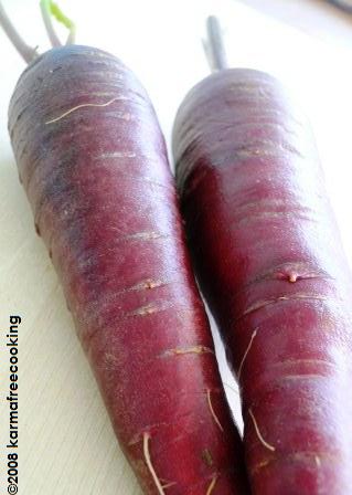 2 red carrots, scrubbed well and cut into large chunks Olive oil Kosher salt and pepper to taste