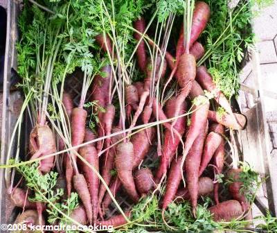 Something curious was that when I peeled the carrots (I did because they were soooooo dirty with mud) I noticed they are orange inside. Not exactly the same as regular carrots, because they have reddish speckles… but orange inside. I thought they would be red, like a beet, inside.