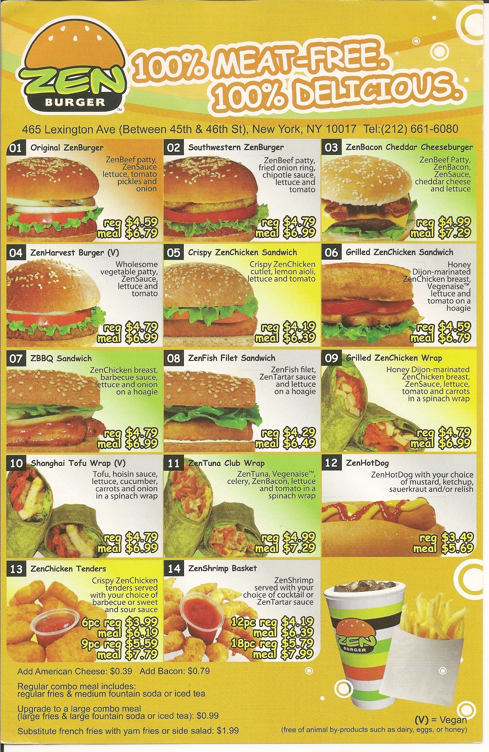 I first learned about Zen Burger by reading the Serious Eats brother blog – A Hamburger Today.  They mentioned how they were a truly vegetarian fast food joint.  I always have my doubts, so I visited their website and even forwarded an email to their management to make sure their ingredients were OK for all types of vegetarians to enjoy.