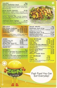 You will find Zen Burger in Mid-town Manhattan on Lexington Ave. between 45th and 46th streets. It looks like a regular fast food joint, but it is so much different than any fast food joint I have visited, starting from the sign at the door. Love it…