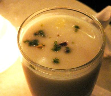 So, for a more authentic version of lassi… you can still follow my recipe, just add a tiny bit of fruit, to maintain the white color of the yogurt. and you can add some pistachios on top… to resemble the one I had at the ITC Agra Hotel… super chic indeed.