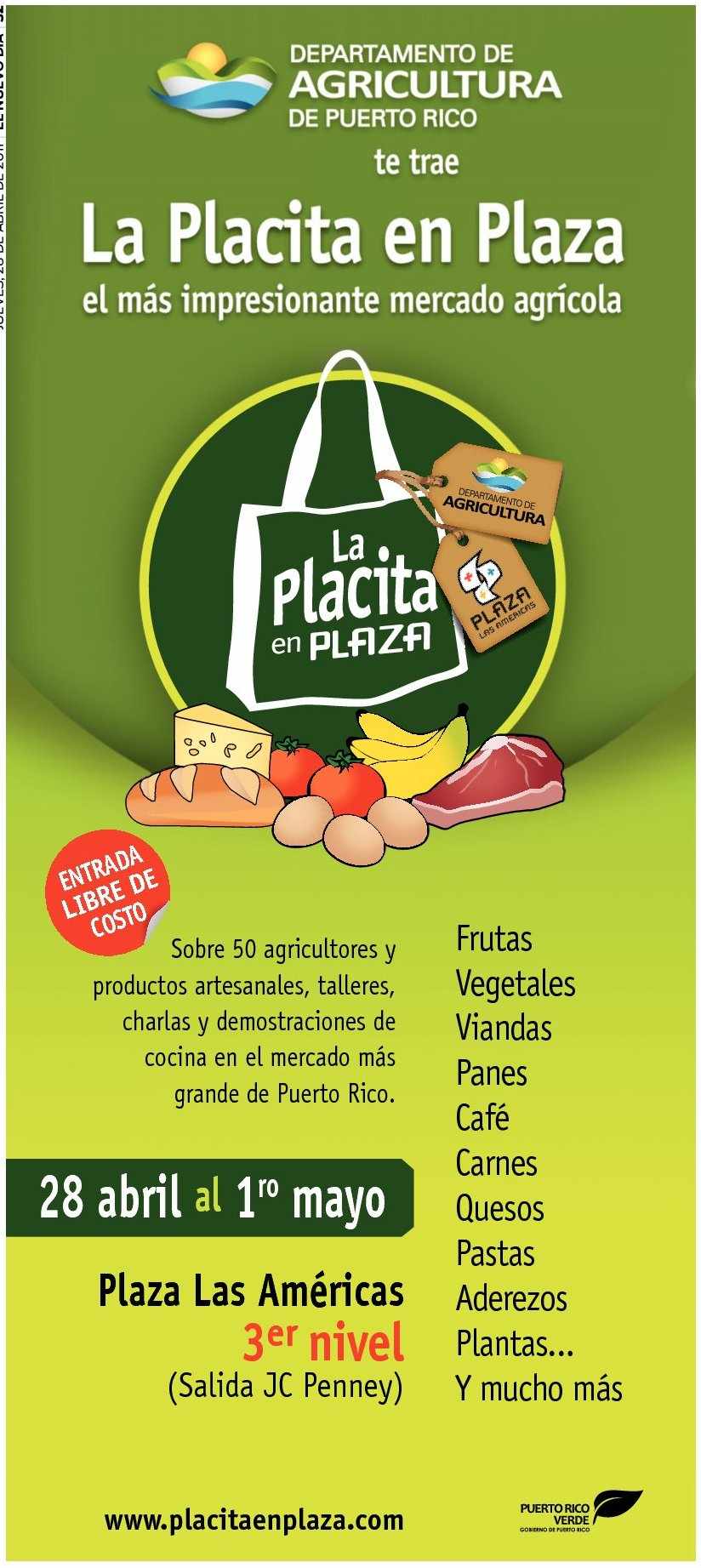 If you live in or near San Juan, this weekend you can enjoy visiting a real modern Plaza de Mercado, La Placita de Plaza… It’s inside Plaza las Américas, with all the comforts of Plaza – air conditioning, easy parking, plus the advantages of trying and sponsoring small local business owners selling their goods and produce. It’s usually the LAST WEEKEND of every month…