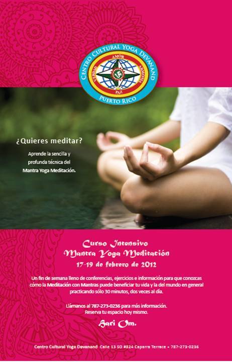 If you want to learn more about the benefits of Mantra Yoga Meditation, the Centro Cultural Yoga Devanand will be holding a workshop this coming weekend February 17-19. At this workshop you’ll get a “crash course” on the benefits of meditating, not only in your own life, but also how it will benefit those around you and the world in general.
