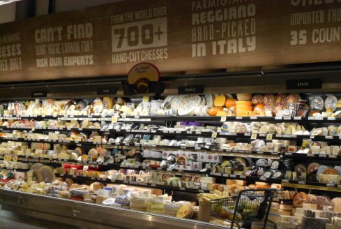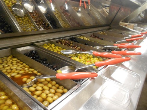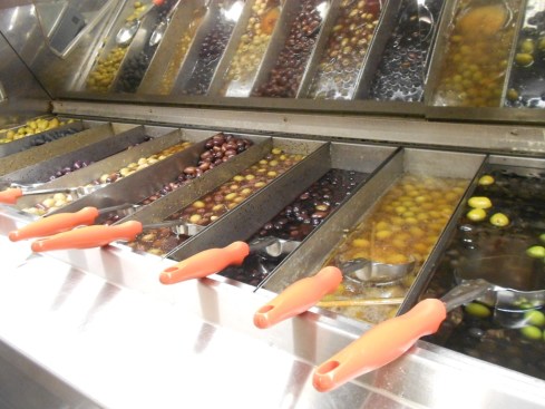 Their prepared foods section is huge… and this section of the store was packed with people looking to buy their dinner for that day. I saw many young, apparently single, people. The place was bustling… I gravitated towards the olive bar, with over 20 different kinds of olives. I had to contain myself from sampling a few…