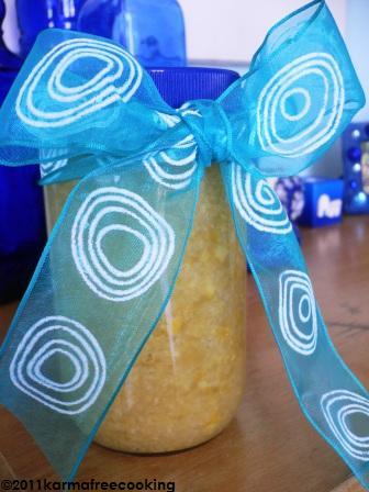 A lot more thought needs to go into making something… Among the presents I have made in the past are my Cranberry Preserves, Brown Rice Krispies Treats, Carob Granola, Rosemary Almonds, these Cherry Carob Cookies, Tomato Bruschetta Mix, Soy Picadillo and even Coquito for the holidays.