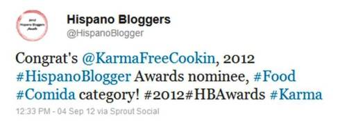 If you’re following my tweets and our FaceBook page you might already know that last week, KarmaFree Cooking was nominated for the 2012 HispanoBloggers Awards.   KarmaFree Cooking is nominated together with 4 other bloggers in the Food Category.