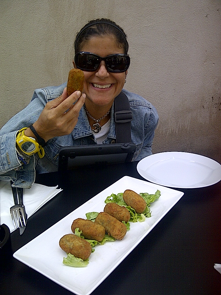 And to finish off our great pilgrimage… we enjoyed some of Spain’s most delicious contributions to the culinary world – CROQUETAS. We ate the most wonderful Spinach and Goat Cheese croquetas. It gave me the inspiration to tweak my spinach croquetas recipe and add some goat cheese to them to make an updated version.