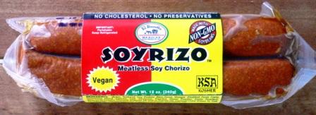 Never been too fond of Mexican chorizo… I much preferred Spanish chorizo. But this Soyrizo tastes like the Mexican version with strong cumin notes. I take it easy with this soyrizo because after my first trip to India, I developed a strong aversion to cumin. For years I was not able to taste cumin or even smell it up close. Now I’m better, but I am still not a cumin fan.