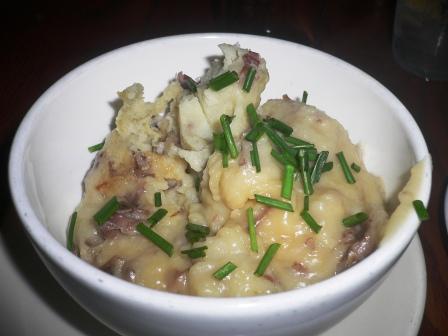 By process of elimination, what did I order???  You might be asking yourselves…  Well, I originally ordered the Ravioli – house-made pasta, spinach “ricotta”, slow-roasted tomatoes, garlic confit, herbs…  doesn’t it sound good???  I was soooooo looking forward to the roasted tomatoes and garlic confit…  Well, something happened in the kitchen that they could not bring me the ravioli.   They had me order anything else I wanted from the menu, compliments of the chef.  When I was perusing the menu, two things jumped at me…  the side dishes, so I ordered the mac and “cheese” with the olive oil mashed potatoes.  I figured if I ordered side dishes, the plates of the other people would not get too delayed.