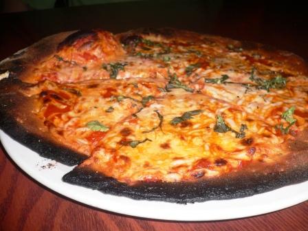 My brother-in-law ordered this… I was also considering it too.  The taste was good – the tomato sauce was a bit sweet, the basil super fresh and the “mozzarella cheese” did not taste plasticky.  Now, the crust left a lot to be desired… and to me, the best torture test of a great pizza is the crust.  It was kind of soggy and burned.  So it was OK, but we’ve had better.