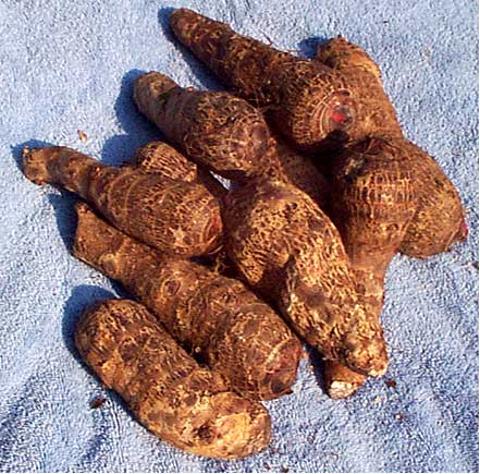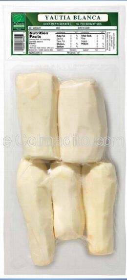 This is a yautía… in Cuba, yautías are called malangas. However, in Puerto Rico we call malanga a completely different tuber. Do not confuse them. I looked up in the internet and apparently it may also be called tanier = tannier = tannia. Don’t know where, but if you can’t find them by the yautía name, any of other those might also work. Yautías come in two varieties – white and purple. You will need yautía blanca or white yautía for this dish.
