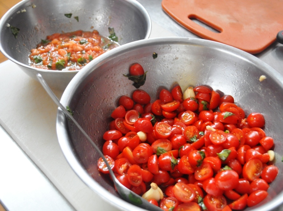 The class is not only about sharing recipes and techniques. We also talked about alternative pastas… we talked about my favorite olive oils and vinegars. We also talked about microplanes and rasps to grate lemon zest and how I do not like to rinse pasta after I drain it. We also shared how the same ingredients for the Marinated Tomates can be used in a bruschetta as an appetizer or skewered to make for a fancier passed hors d’oeuvre.