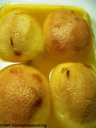 - Take the out of the oven and immediately but very carefully place them in a shallow dish to cool. BE CAREFUL THE SUGAR BURNS!!!