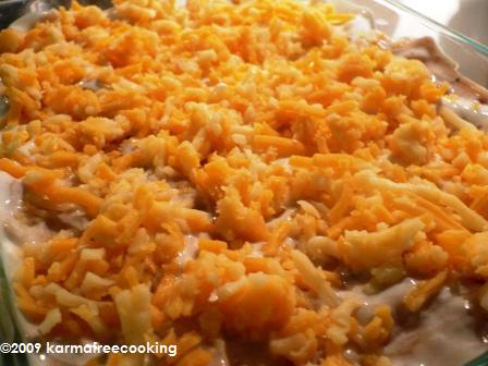 5. Followed by half of the tofu, half of the mushrooms, half of the remaining salsa mixture, half of the sour cream/yogurt mixture, and half of the remaining cheese. Repeat process with remaining ingredients. Cover and refrigerate overnight.