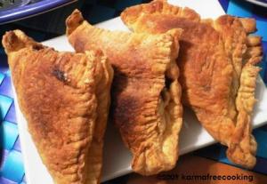 1. I’ll be honest… I do not measure a lot.  So I do not know how large I roll out the puffed pastry, but just enough to make 4 medium sized squares to make into these pastelillos.  Each pastelillo serves one not so big eater.