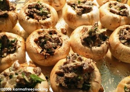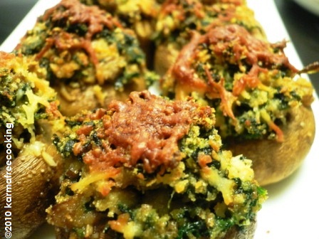 I’m into mushrooms… they’re delicious and they’re easy and quick to make. And when recently I was invited to make something “different” for the Vegetarian Festival at the Yoga Center, I decided I wanted to make some stuffed mushrooms.