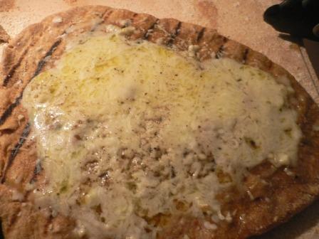 - Place the sauce over the dough. Place some of the chorizo mixture over the sauce and top with a generous amount fo shredded cheese.