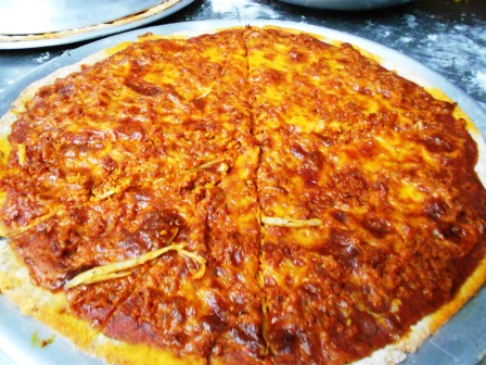 2 ¼ cups of All Purpose Baking Flour GF (Bob’s Red Mill) sifted and some more to work the dough 1 ¼ cups oatmeal flour gluten-free, sifted ¼ cup gluten substitute from Orgran 6 ¾ tsp xanthan gum 1 ¾ tsp sea salt 3 ½ tsp olive oil 3 ½ tspsapple cider vinegar 2 ¼ soy milk, warm 3 ½ tbs dry yeast 3 ½ tbs brown sugar 3 ½ tsp garlic poder 1 ¾ dry oregano 3 packets of organic cheese, shredded Tomato Sauce 6oz of organic tomato paste 3 cups of water 1 tbs annatto oil Salt Garlic powder Italian Seasonings Vegetable bouillon cube (optional) “Chorizo” 1 package of veggie hot dogs, finely grated 1 vegetable boullion cube 1 tbs water Sea Salt Garlic Powder 2-3 tbs annatto oil