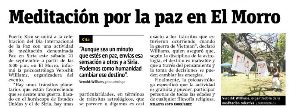 If you live in Puerto Rico, there will be a Mediation for Peace at El Morro starting at 5PM, Saturday 21.