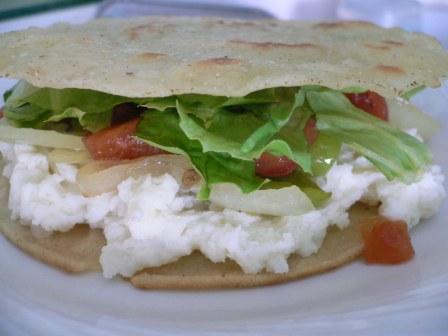 I had a bunch of tortillas I had bought to experiment with a few Mexican dishes I learned in Mexico and got tired of seeing them in the fridge, so I searched several recipes and found a few interesting ones, but of course all included some kind of meat. I had some left-over tofu-chón in my fridge and I decided to mix and match recipes to see what would work.