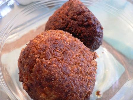 Textured soy protein is sold in bulk at most health food stores and it resembles cereal – a bit like Grapenuts, I think. It comes in a variety from light to dark and from medium to even little cubes. I particularly like the medium ground, the lighter the better. Here’s a picture of the one I refer to, but a bit darker in color than what I usually prefer, but it still works for our purposes.