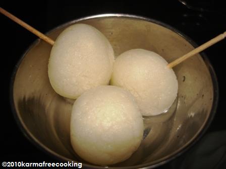 For years, my mom and I have enjoyed 2 of India’s most popular desserts – galub jamun and rasgulla. We lovingly call them “the Indian balls”. Galub Jamun is a ball made of wheat flour and Rasgulla is a ball made from an Indian cheese similar to paneer called chhena. Both are served warm in syrup and they’re delicious!!!! For years, we’ve seen these desserts packed for travel in cans and this was the first time we brought some home. You can find them in any sweet shop and especially at gift shops at the airports.