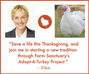 And it’s a shame this holiday has become such a sad holiday for turkeys… I am sure each and every turkey would THANK YOU a lot if you can make Thanksgiving an even more positive holiday without the need to bring suffering to our turkey friends. There are so many more positive ways to demonstrate our gratitude…