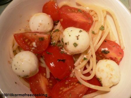 3. Boil the pasta in salted water according to the package directions. Orzo cooks very quickly… Drain most of the water, but not all. I do not use a colander for this; I just strain most of the water thru the pot cover. The water left will help create the sauce.