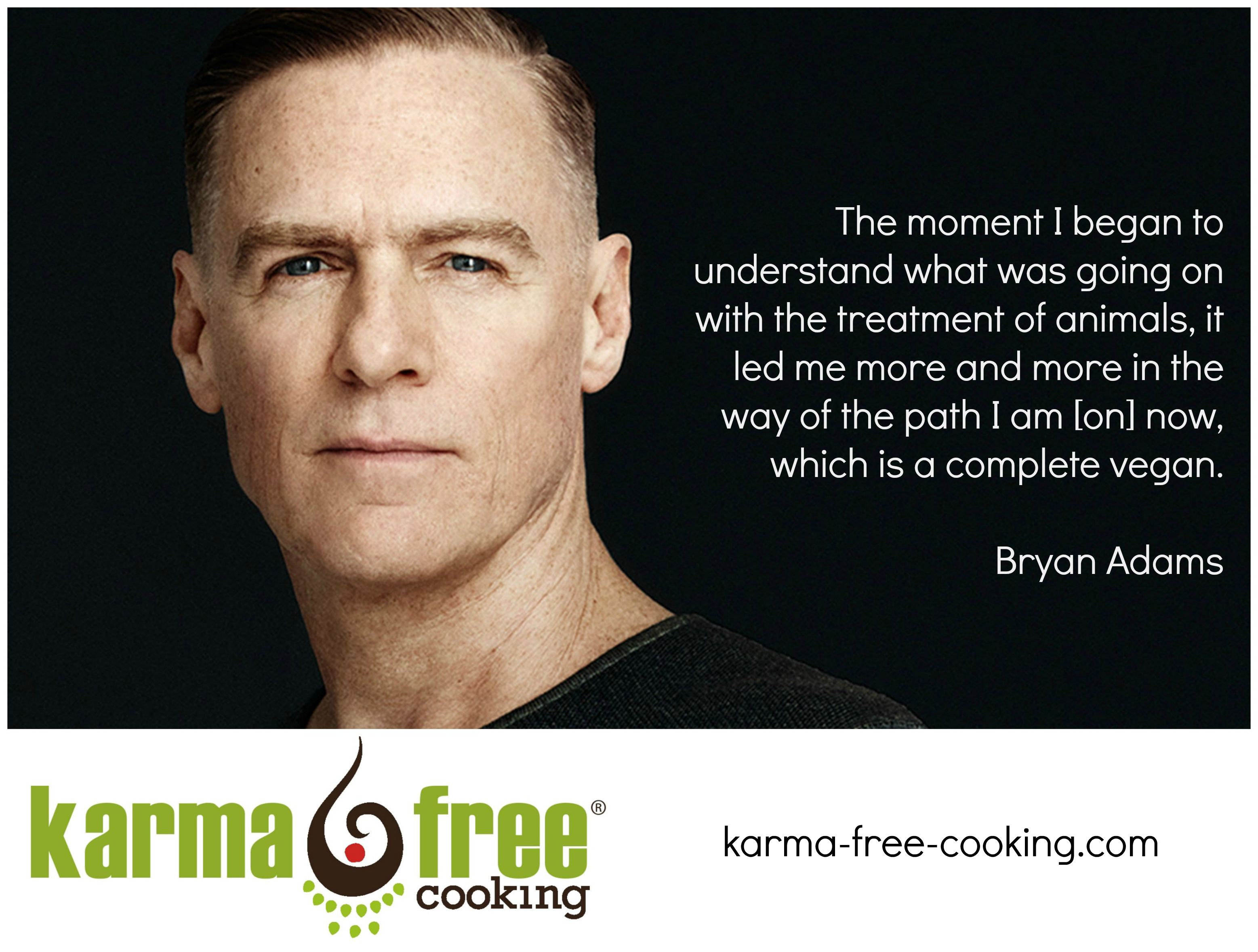 Tags: #karmafree, artist, Bryan Adams, Canada, canadian, food, Heaven, learning, quotes, singer, Summer of 69, treatment of animals, Vegan, vegetarianism, wisdom